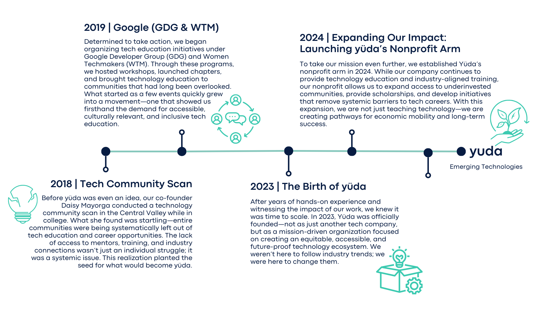 So in 2023, we took a bold step: we created yüda. Not as a business, but as a revolution. A space where technology education is equitable, accessible, and future-proof. A community where anyone, regardless of background, can step into the future with confidence. Because the future shouldn’t be reserved for the privileged few, it should belong to all of us.